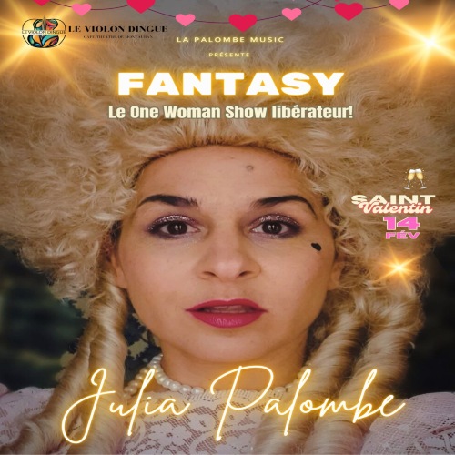 Afficher le planTitre : FANTASY Artiste : JULIA PALOMBE Style : ONE WOMAN SHOW Avec « Fantasy », Julia Palombe électrise l’ambiance, dès son entrée sur scène, on comprend que l’on est embarqué dans un monde où l’imagination est reine ! Passant sous nos yeux ébahis de l’ombre à la lumière des projecteurs, nos fantasmes soudain prennent vie. Nos mots, sa façon de les dire. De les faire grandir, de les contourner, d’en faire des armes de construction massive pour un monde plus libre… Plus jouissif aussi. Et surtout, oh my god(e) ! qu’est-ce qu’on ri ! Un expérience théâtrale qui bouscule, on peut le dire. Mais que c’est bon de réinventer les règles du jeu loin des sentiers battus… Julia Palombe est pour toute une génération un symbole de liberté sensuelle. On lui doit le manifeste jouissif "Au lit citoyens!", l’hymne pop girlpower "J'aime mon vagin", sans oublier ses chroniques pimentées sur Sud Radio aux côtés de Brigitte Lahaie. Reconnue pour ses One Woman Show audacieux mêlant humour, chansons et improvisations, Julia Palombe signe avec « Fantasy » un spectacle unique chaque soir, et dont on se souvient longtemps après l’avoir vu…
